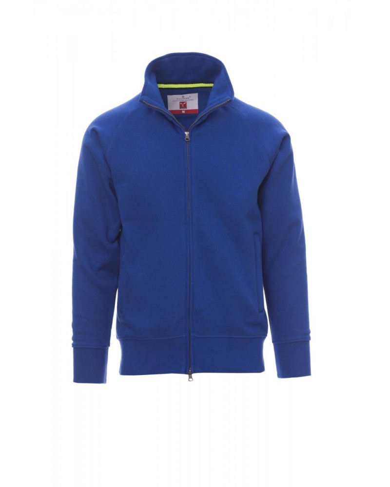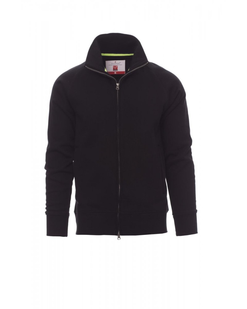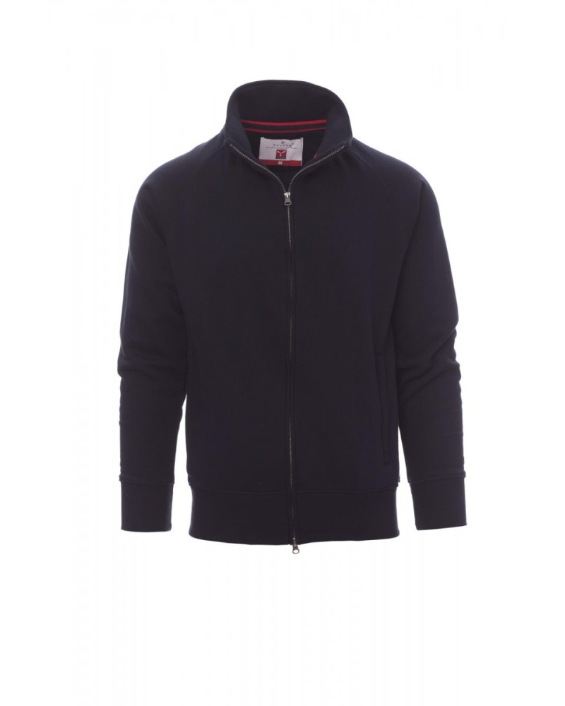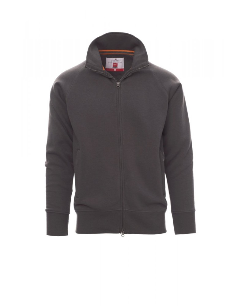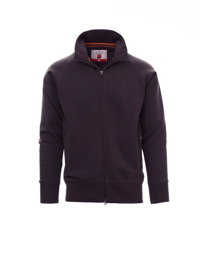 Moška jopa z dolgo plastično SBS zadrgo z dvojnim kovinskim držajem, raglan rokavi, dva žepa s skrito zadrgo, raztegljive rebraste manšete in spodnji rob, ojačani šivi.