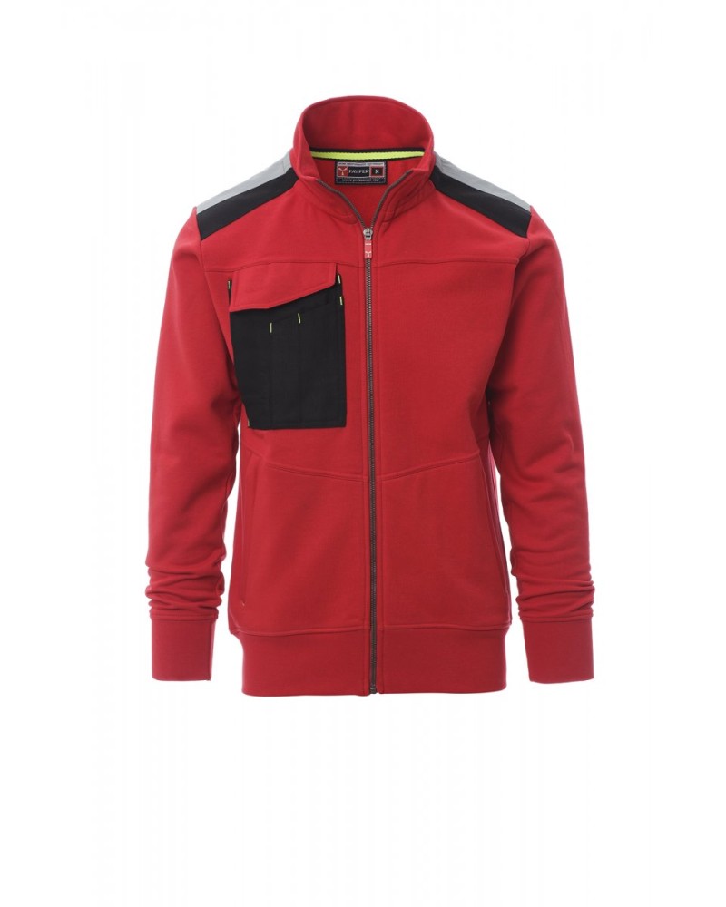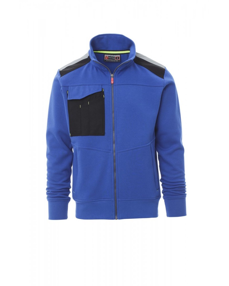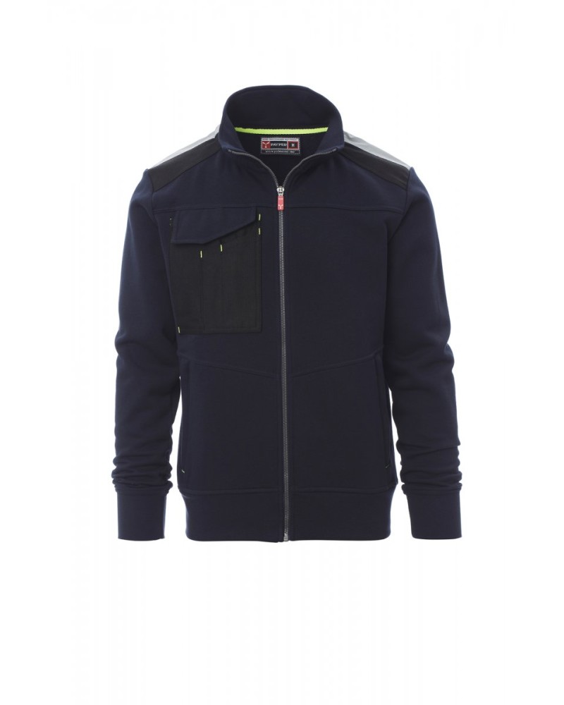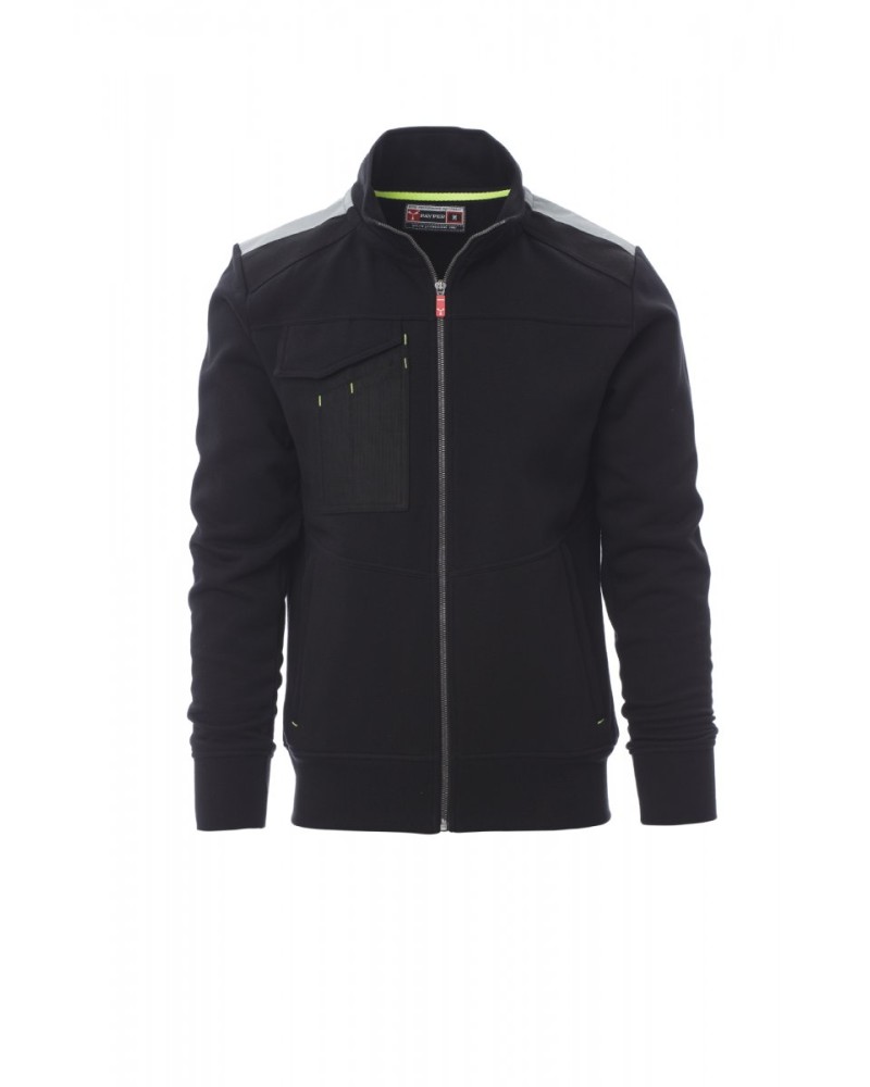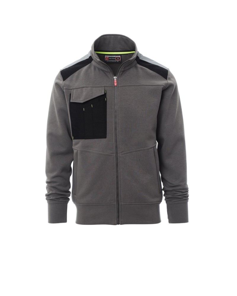 Zgornji del moške trenirke, plastična zadrga SBS po celotni dolžini s kovinskim drsnikom za »polavtomatsko zapenjanje«, dva žepa z zadrgo, večfunkcijski žep na prsih z nosilcem izkaznice in poklopcem za zapiranje s sistemom LOCK SYSTEM, odsevni trakovi na ramenih, rebrasta elastika v zapestju in pasu, dvojni šiv ob vratu, na rokavih in v pasu ter trak za ojačanje ovratnika. Tkanina je bila obdelana, da odbija vodo.