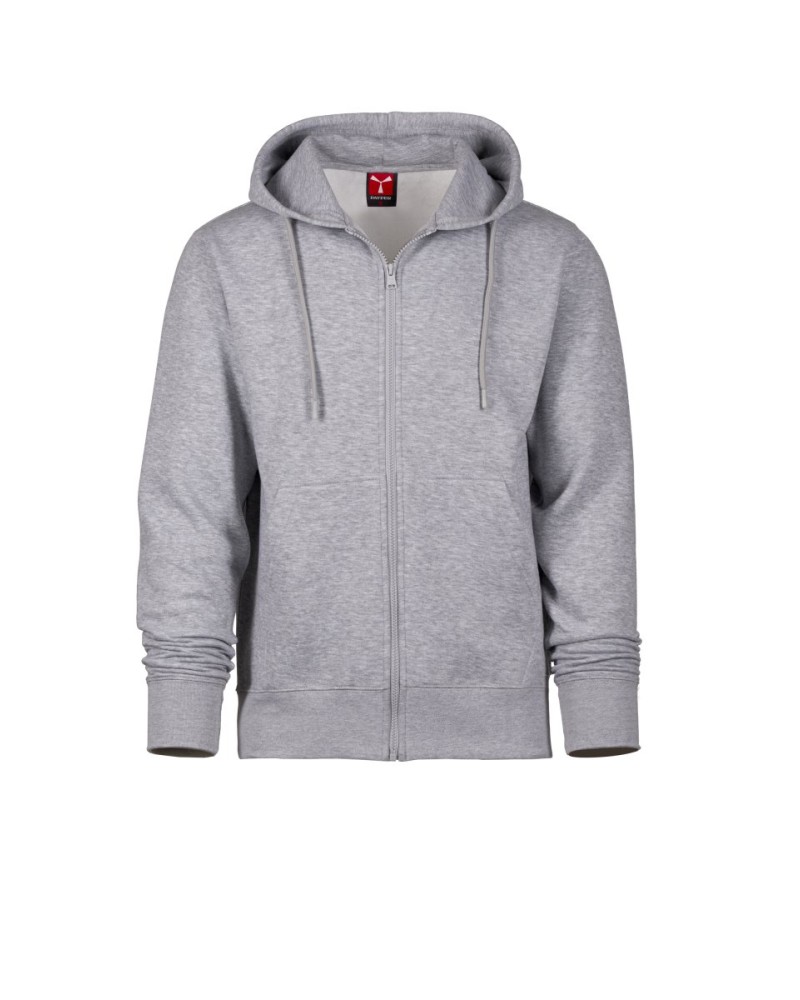 Moška jopa s celo plastično zadrgo s personaliziranim drsnikom, kapuca, barvna vrvica in barvni šivi, okrogel kroj rokava, kenguru-žep, elastično zapestje in spodnji rob. Ojačani šivi, trak za ojačanje notranjosti ovratnika.