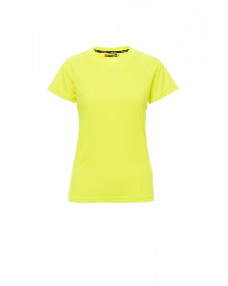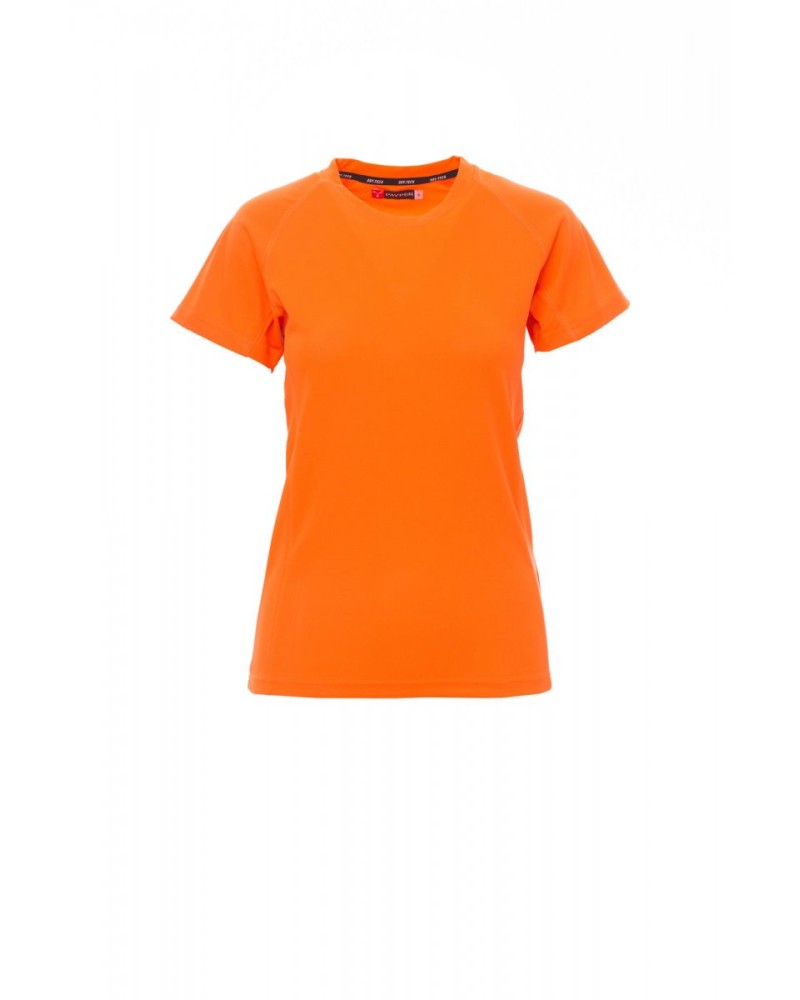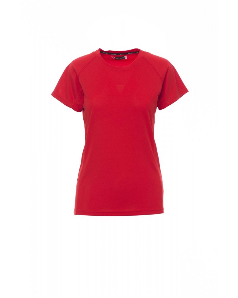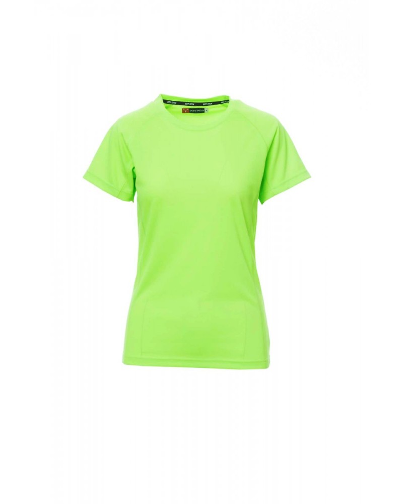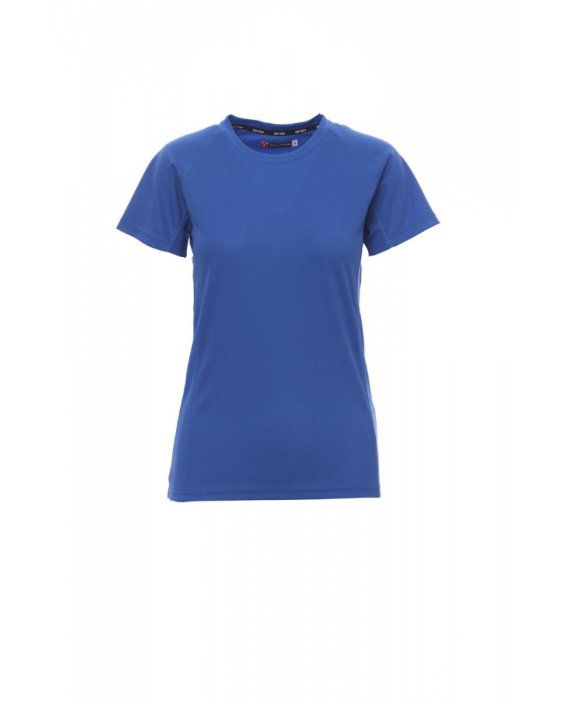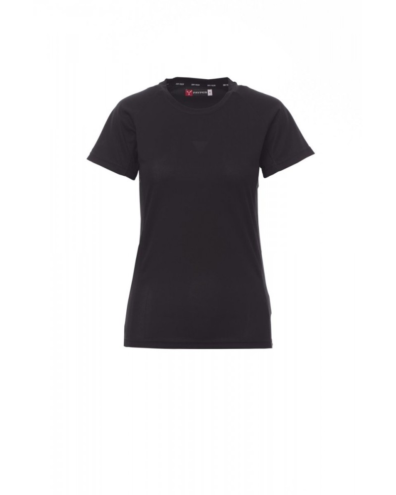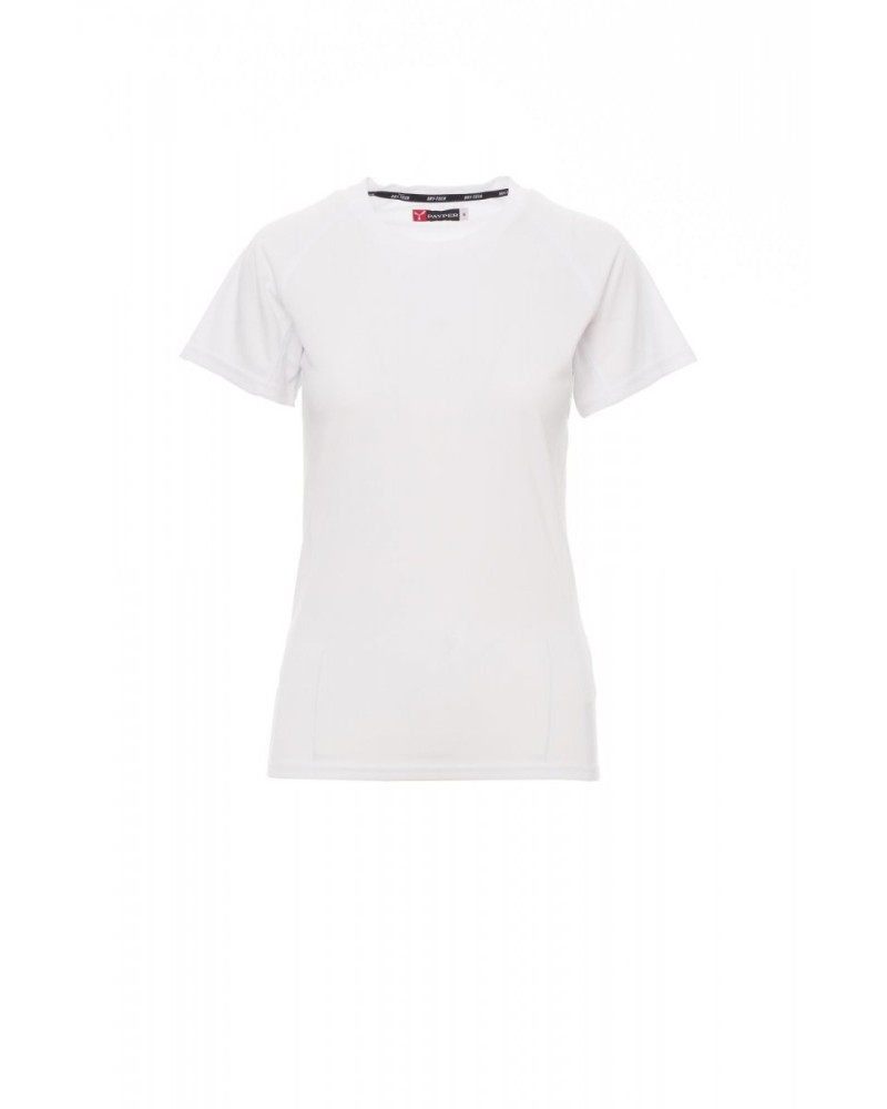 Zenska tehnično-športna prilegajoča se majica z rokavi raglan, dvojni stranski šivi za bolj udobno prileganje, trak na ovratniku.