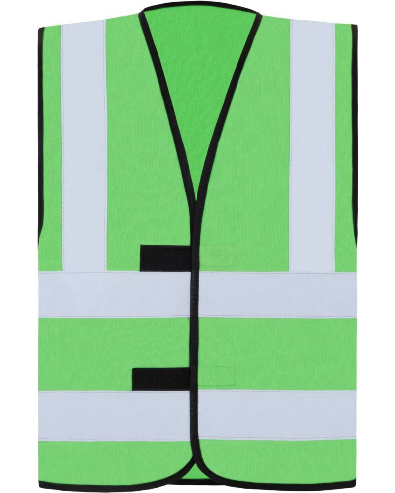 Nastavljiva velikost z dvema ježkoma, rumena in oranžna ustrezata standardu EN ISO 20471, vse ostale barve ustrezajo standardu EN 17353 tip B3 (temnost), štirje odsevni trakovi širine 5 cm.