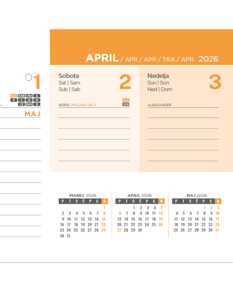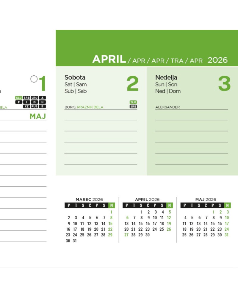 označeni slov. in tuji prazniki, imena in lune,tedni.