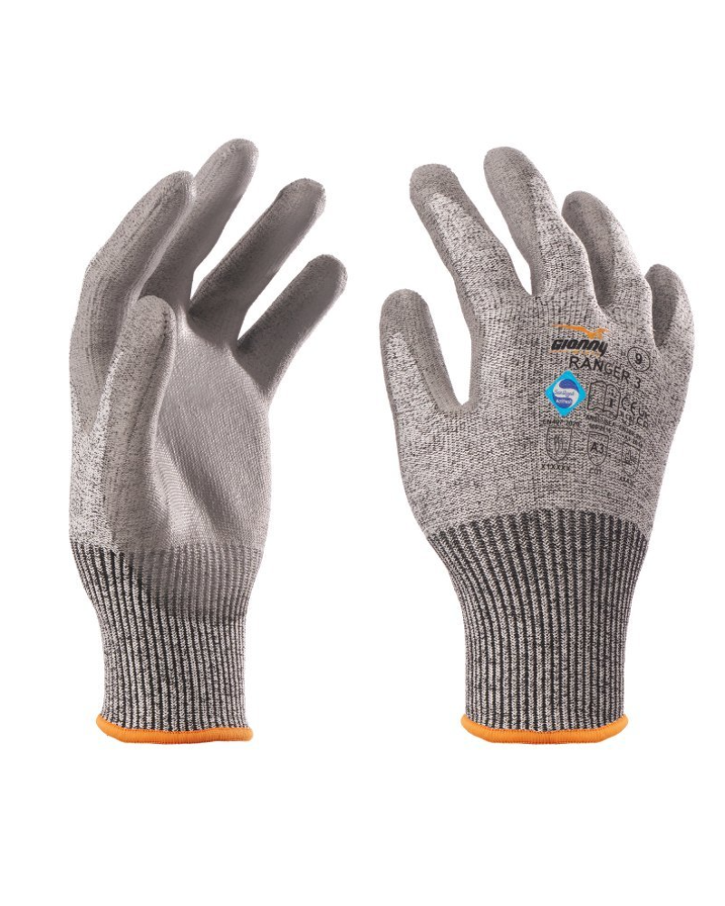 Rokavice proti urezu, material HPPA 13G, pletena manšeta, s prevleko iz poliuretana na dlani. Značilnosti: robustne. Moč: odpornost na raven rezanja C (TDM cut)/A3 (ANSI/ISEA), udobje. Področja uporabe: opravila in sestavljanje rezanih, suhih ali rahlo oljnatih elementov.