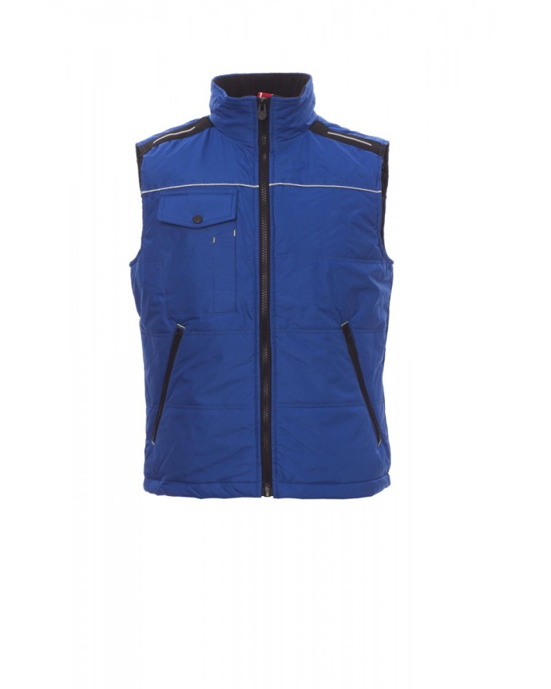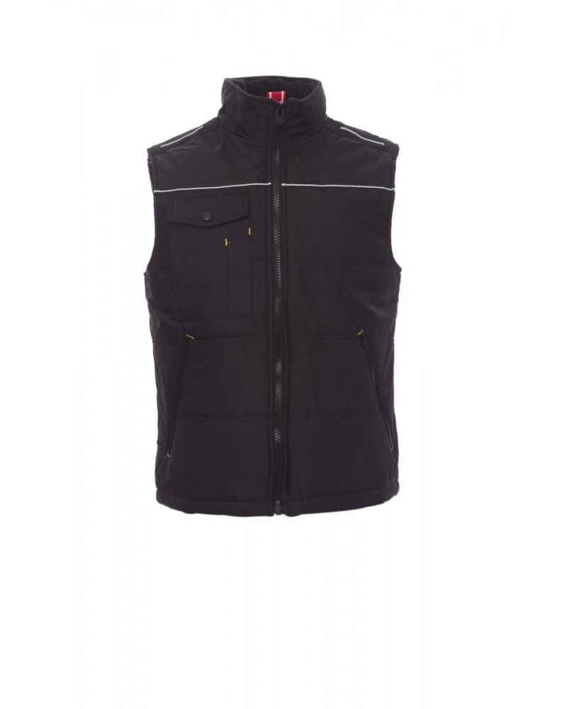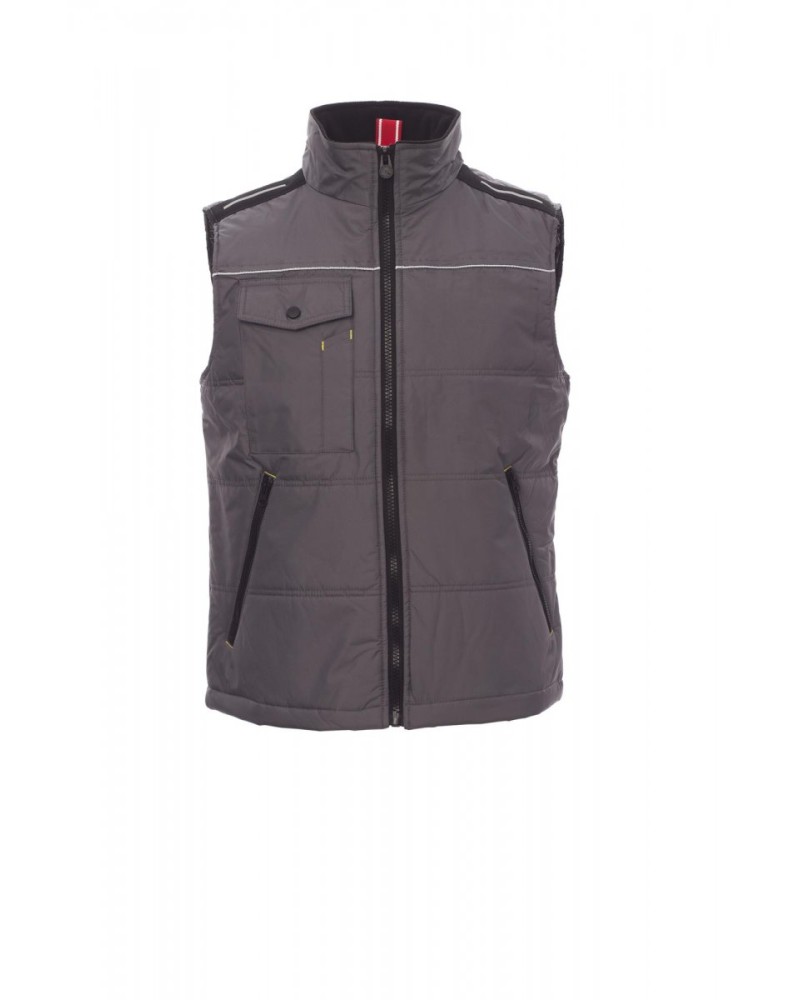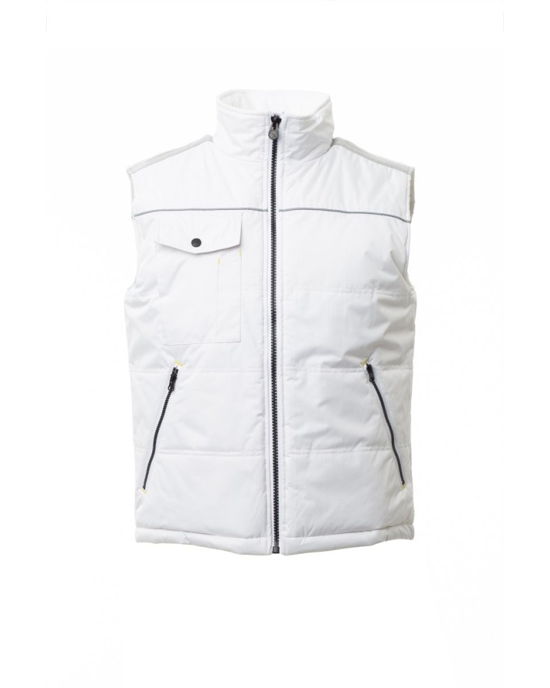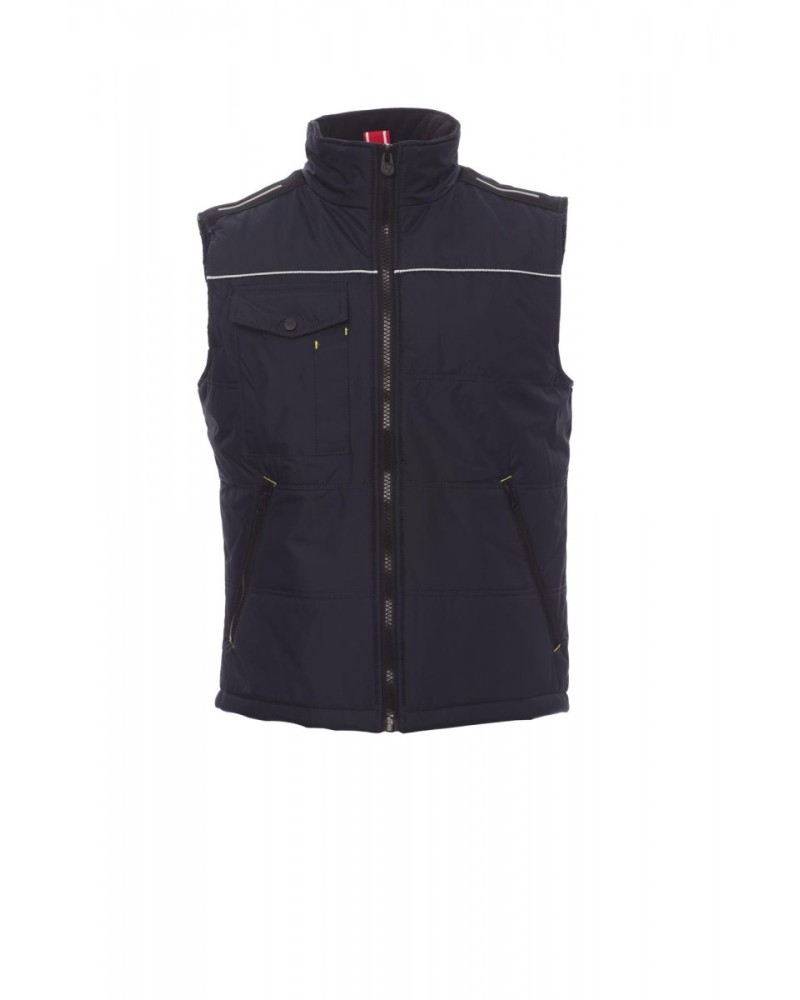Unisex brezrokavnik s plastično zadrgo 8 mm in kovinskim držajem, hrbtni del z obrobo, dva prostorna zunanja žepa z zadrgo, prostoren prsni žep za pametni telefon, nosilni obroček za izkaznico, prsni in ramenski odsevniki. Notranjost: prešita podloga s končno prevleko, flis v notranjem delu ovratnika, žep.